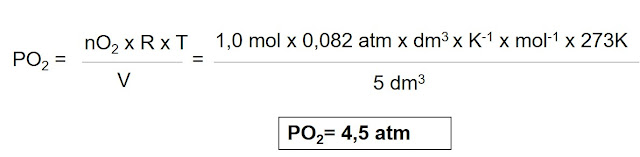 De esta forma calculamos las presiones parciales, es decir la presión que ejerce cada gas individualmente y la presión total del sistema.